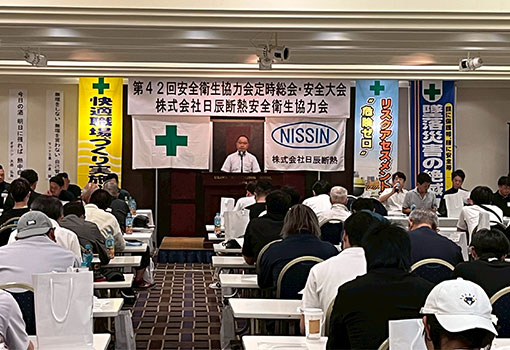 安全管理の徹底を計り、ゼロ災害を目標とし、毎年夏と冬に安全大会を開催しております。内容は「リスクアセスメント」「熱中症対策」「災害防止」「事故事例から学ぶリスク回避」「事業者の責任」についての説明、安全ビデオ鑑賞、講師による講義など また、職長賞の表彰や、標語募集し優秀賞を授与することにより安全に対する意識を高めるなど、安全衛生活動に力をいれています。