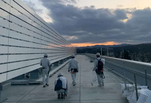 現場ごとに安全パトロールを実施しています。点検表に基づく評価点による指導、 是正により、無事故無災害を目標としております。ヒヤリハット事例や注意点などを 社内定例会議で報告、全体会議で周知するなど、フィードバックに重点を置いています。